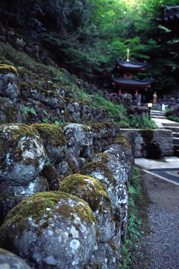 一の鳥居から更に坂を登ると、愛宕(おたぎ)念仏寺があります。ここには化野念仏寺と同じく羅漢があります。昭和56年から一般参拝者に呼びかけて作っただけあって、全体的に新しいものが多く、中には一眼レフを構えているものもあり、ちょっとびっくりします。