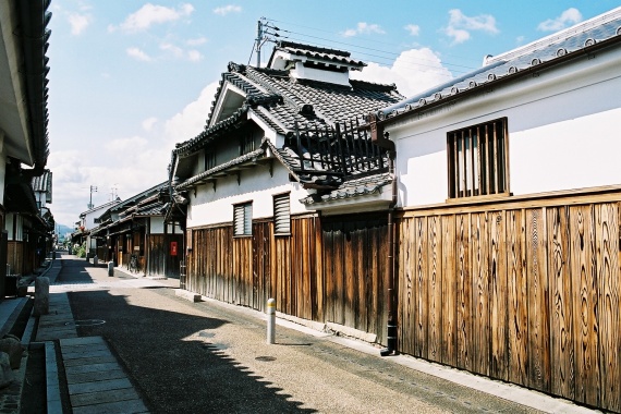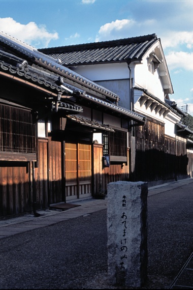 日本の町百選にも選ばれている城之門筋という南北に走る通りが、この寺内町のメインストリートであり、最も町並みが保存されているところでもあります。ここにはいくつもの、古くて立派な商家が連なっています。どれも往年の面影を色濃く残している町屋で、それぞれに特徴的で豪壮な外観を誇ります。このあたりは私が知っている町並みの中では、並ぶものがない美しさだと思います。