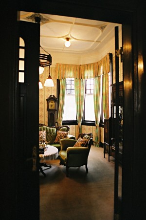 室内はドイツの伝統様式を取り入れながら、アール・ヌーヴォーの影響を感じさせるもの(一階の扉の取っ手など)があります。また、食堂には中世城館風のデザインが取り入れられています。 |