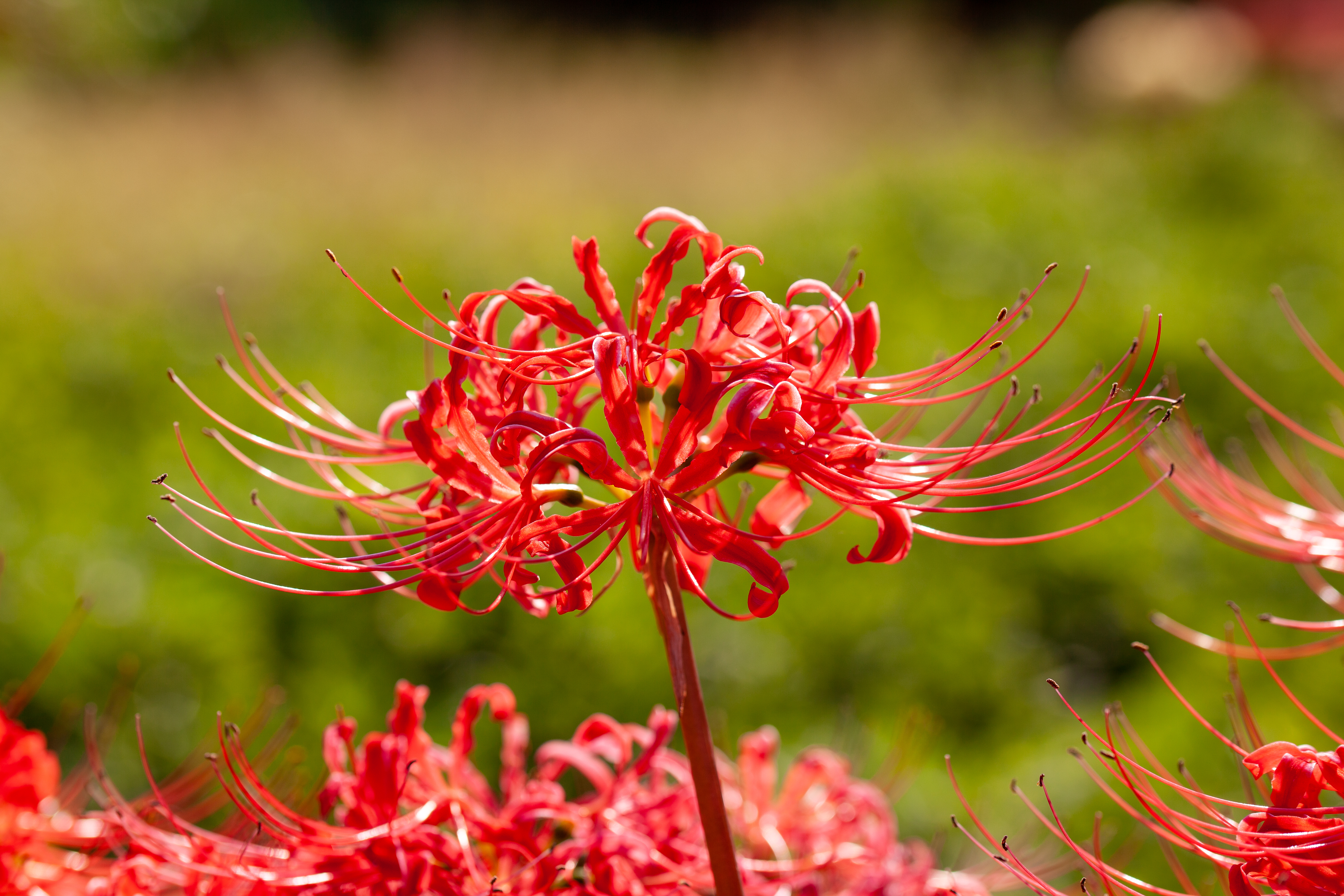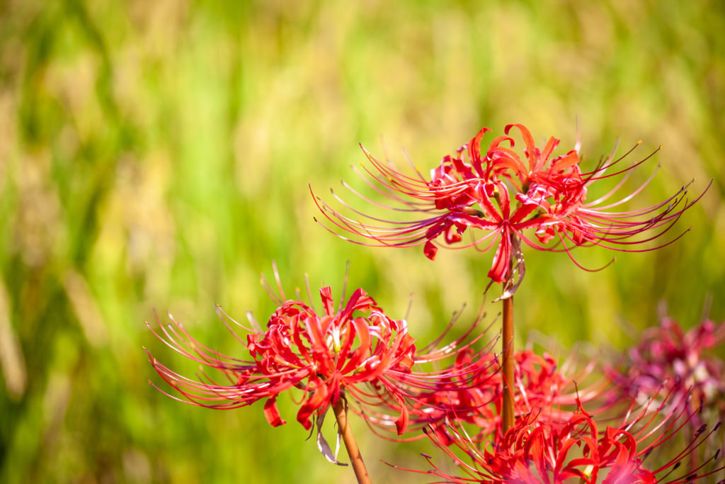 彼岸花もそろそろ終わりを迎える、というので、公園に撮りに行ってきました。公園ですが、田んぼになっていて、刈り取りが近そうでした。