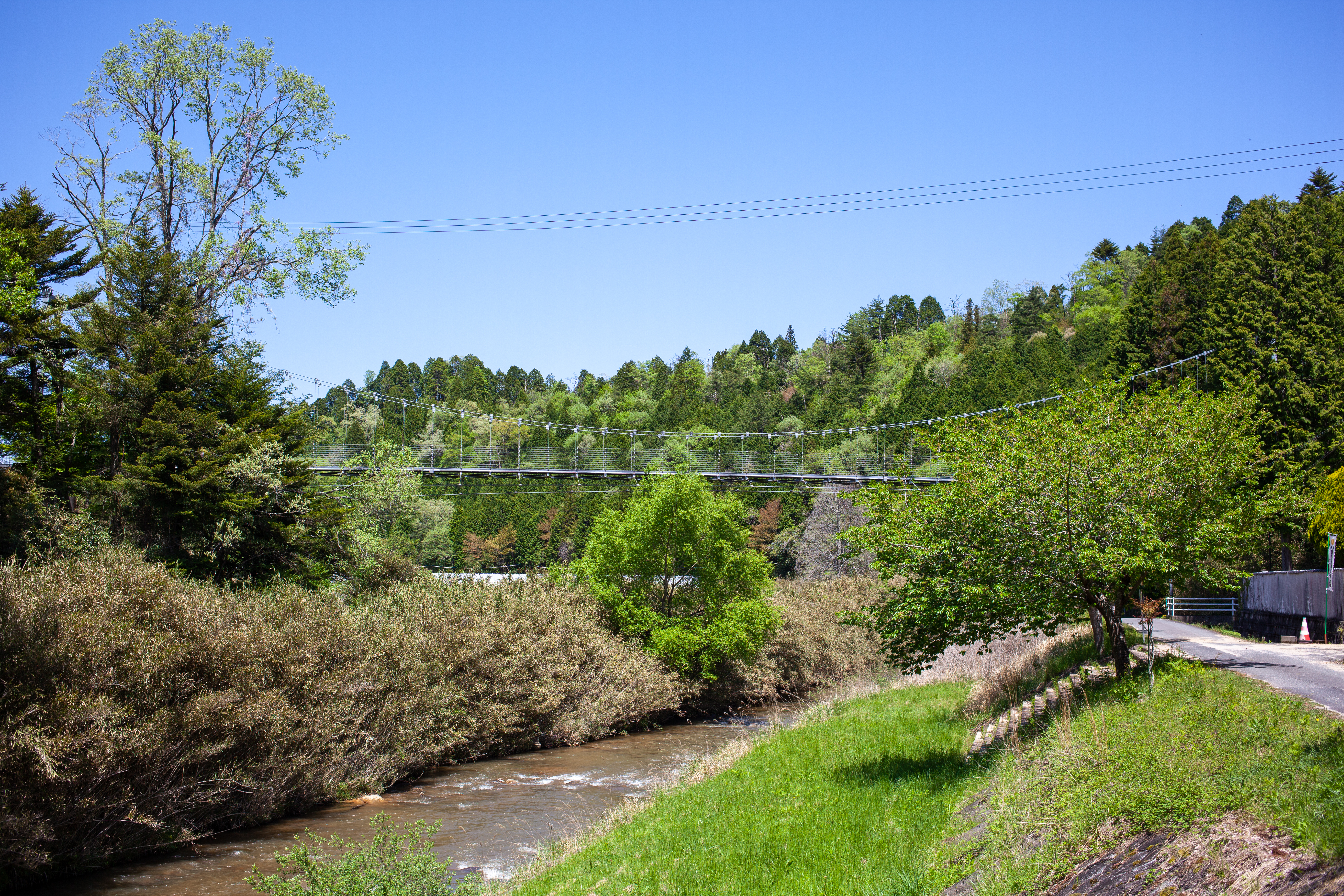 予定通り、玉桂寺前駅で降りて吊り橋(怖い)を渡り、玉桂寺にお参りして戻るルート。青空と新緑がとても綺麗。こういうときはカラーがいいな、と思います。