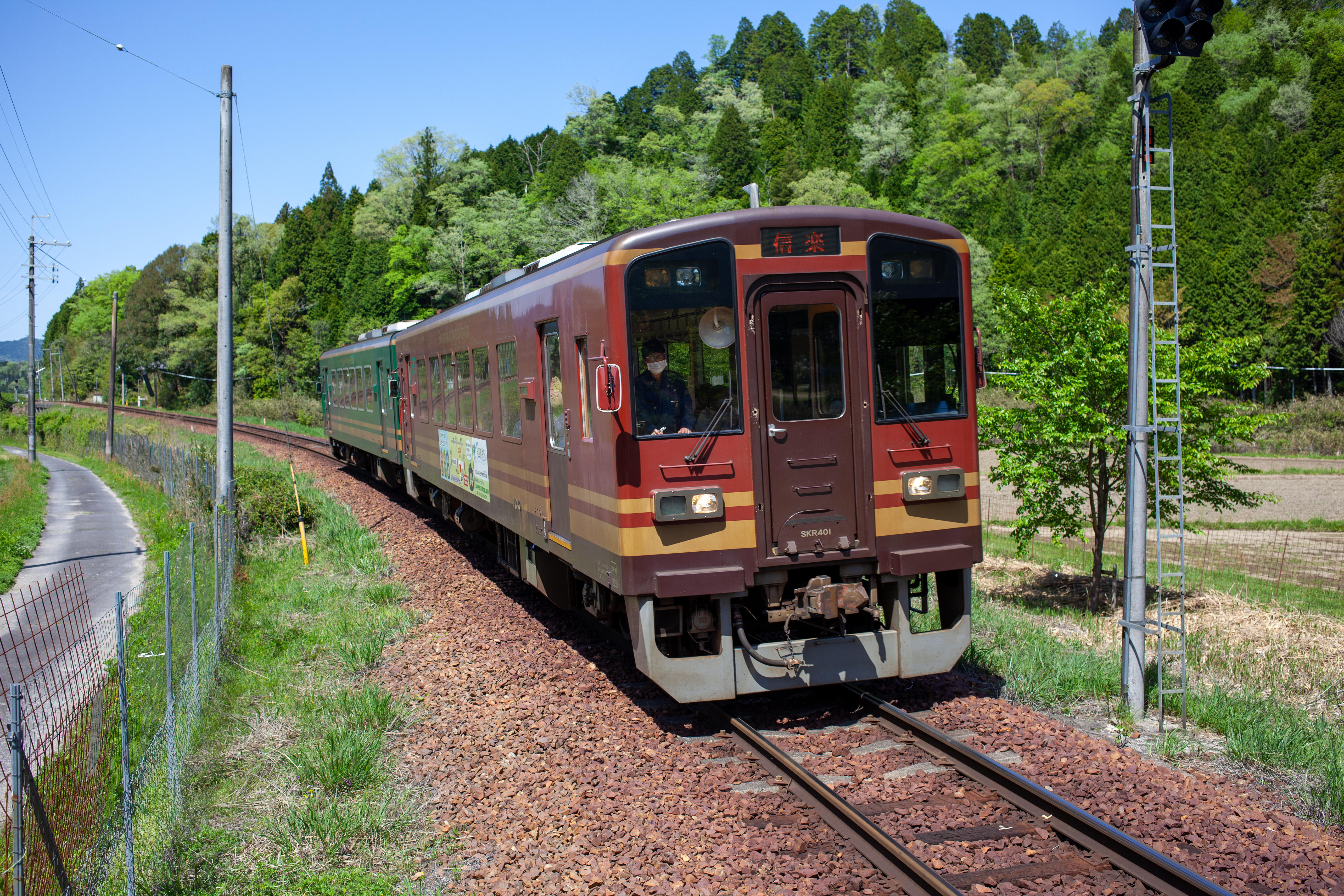 信楽駅発12時54分に乗り、玉桂寺前駅で降り、13時46分発の電車に乗ったので、だいたい1時間くらい。