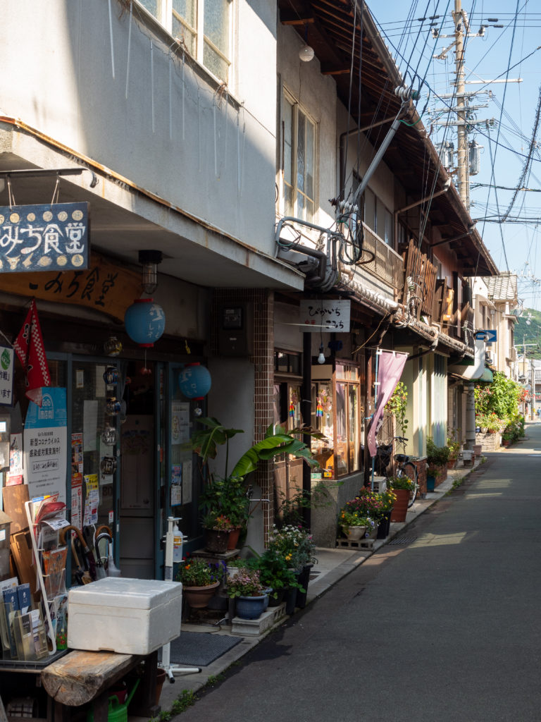 渋滞を警戒して、7時前に出発。早く着きそうだったので、予定になかった洲本に行くことにしました。ガイドブックで見た「洲本レトロこみち」へ。早すぎてほとんどのお店が開いていなかったので、うろうろしてテラス席のあるカフェで休憩。