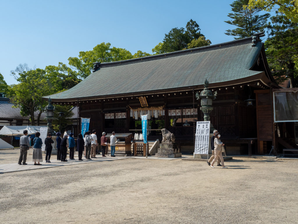 洲本で昼ごはんを食べた後、「たこせんべいの里」に向かうも、すごい混雑だったので、何も買わず伊弉諾神宮に移動。駐車場は混んでいましたが、なんとか滑り込ませて参拝。行列ができていました。