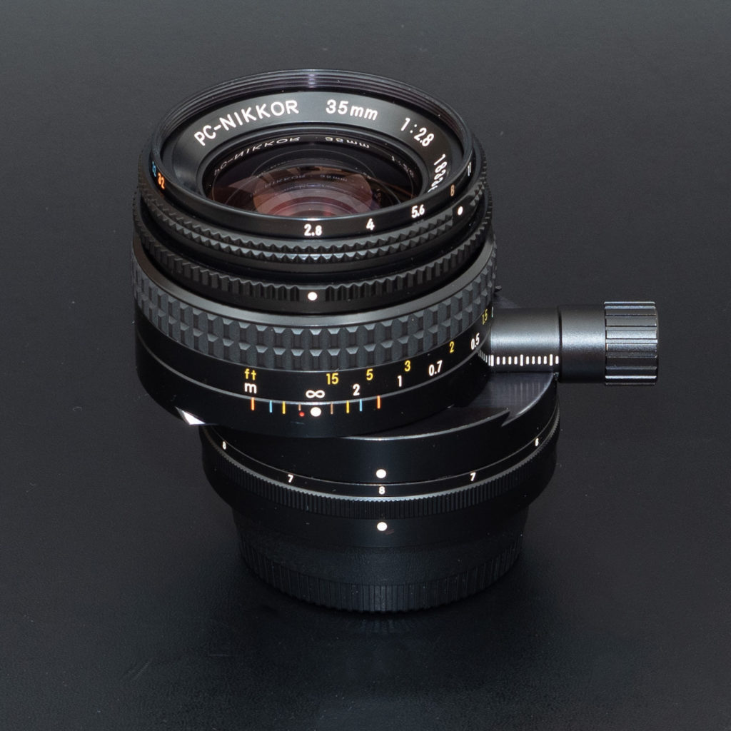 古い世代のPC-NIKKORには28mmと35mmがあるので、どちらがいいか、という質問を、用途と合わせてしたら「28mmの方がいいですよ」ということだったので見せてもらったところ、全体的に綺麗なのだけど、レンズがシフトした位置で固定されず、自重でもとの位置に戻ってきてしまうので、パスしました。28mmはひとつしかないらしいので、35mmも見せてもらうことにしました。