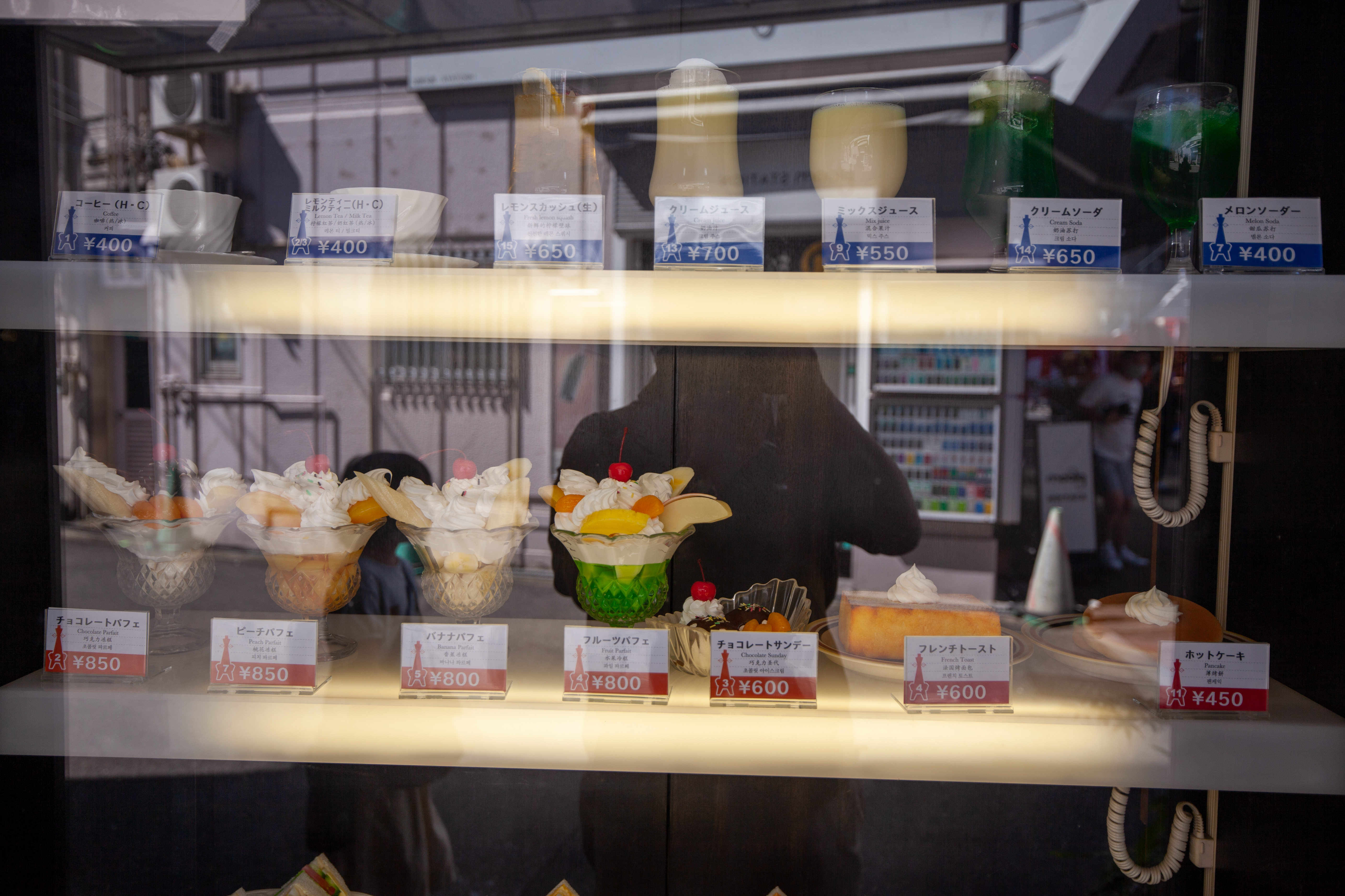 行きの電車で調べていたところ、「喫茶 ドレミ」のプリン・ア・ラ・モードが美味しそうだったのと、「喫茶 通天閣」の昔ながらのパフェがよさそうだな、と思っていて実際に行ってみると、前者は並んでいたのでパスして、後者へ。妻と娘はパフェ、息子はフレンチトースト(あると必ず頼む)、私はホットケーキとアイスコーヒー。パフェは店頭にあったサンプルそのままのボリューム。奇をてらうことなく、恰好をつけることのない、全くの普通でありながら、おいしい。近くにこういう店があるといいな、と思いました。