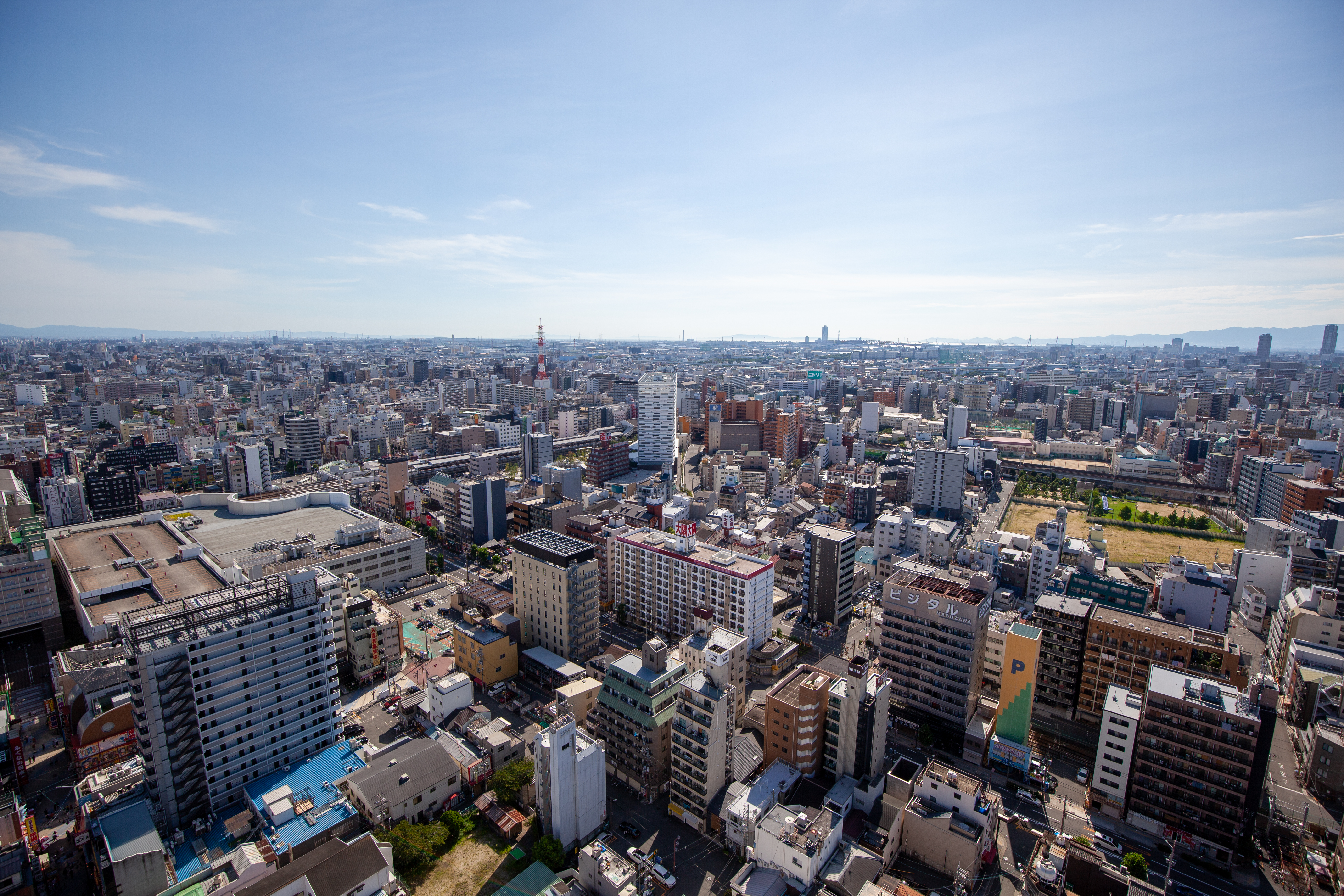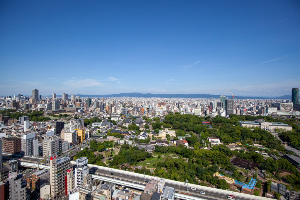 天王寺にあるあべのハルカスの方が高いのですが、特別屋外展望台は窓がなく、生の景色が見えるので迫力があります。ハルカスで屋外だと怖すぎると思いますが。写真的にもガラス越しよりもくっきり撮れて満足。16mmで撮ると広大さが強調されますね。