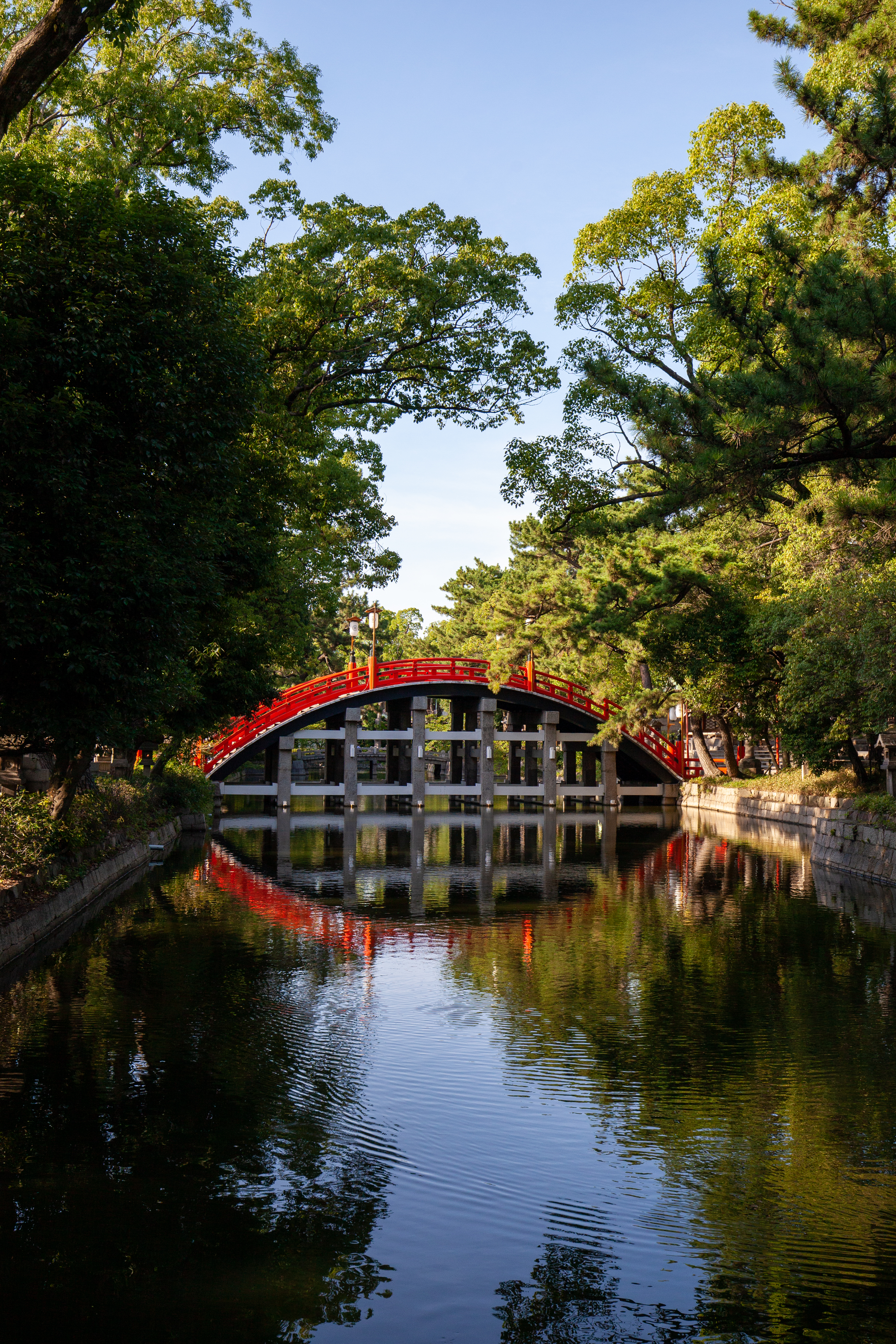 住吉鳥居前駅で降りると、すぐに住吉大社。残念ながら閉門が17時で、タッチの差で参拝できず。太鼓橋を渡りながら「出没!アド街ック天国」で得た受け売りの知識(昔は階段がなくて足を差し込む穴があったんやで)を子どもたちに披露したりしながら写真を撮り、「チン電」に乗って天王寺へ。