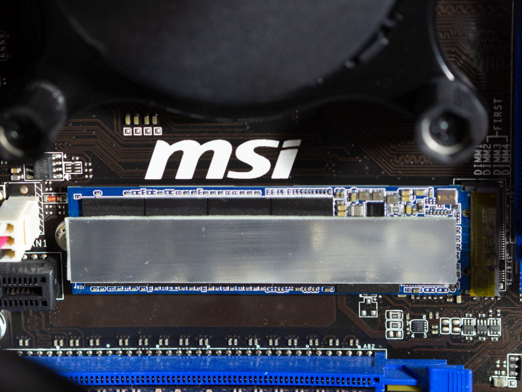 あと、購入してから知ったのですが、マザーボードにM.2スロットがあります。SATAの5番目と6番目のポートとの排他利用ですが、ちょうど該当するポートは使っていません。