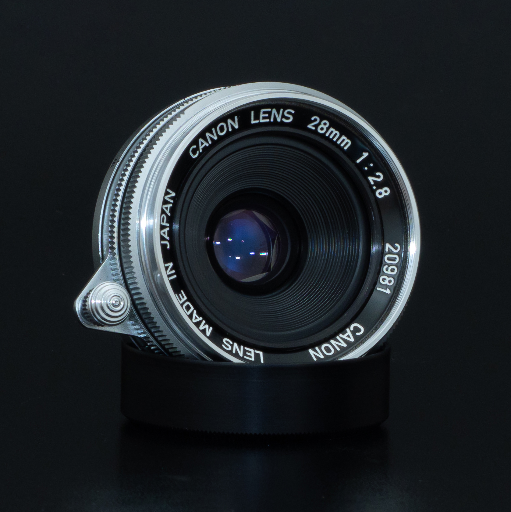 いろいろと検討した結果、CANON LENS 28mm F2.8にしました。径が大きくて奥行きの短いサイズ感が魅力的で、シルバーでも光沢あるクロームとマットな梨地の組み合わせが好み。決定的だったのは、比較的手頃な価格で綺麗なものに出会ったから。