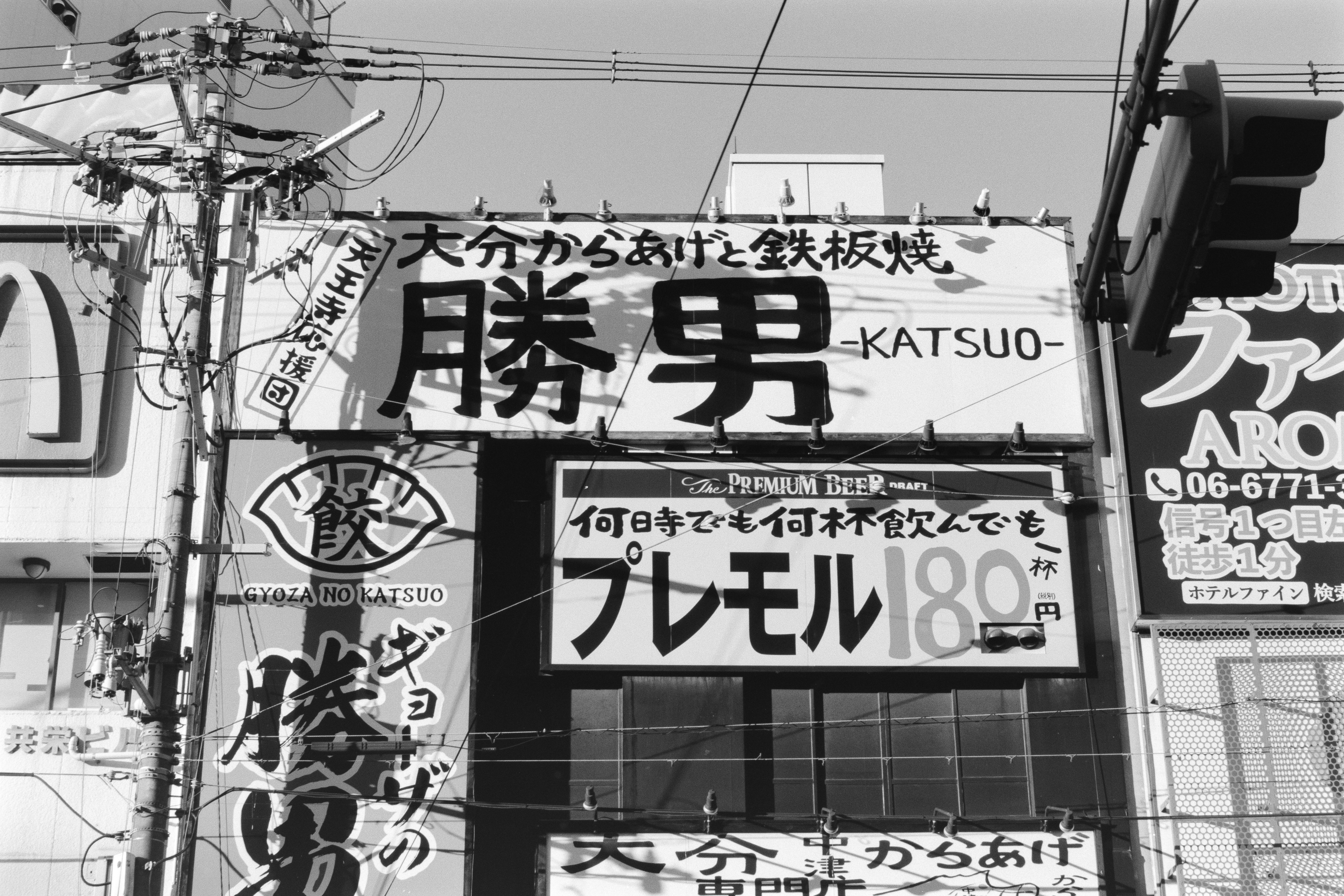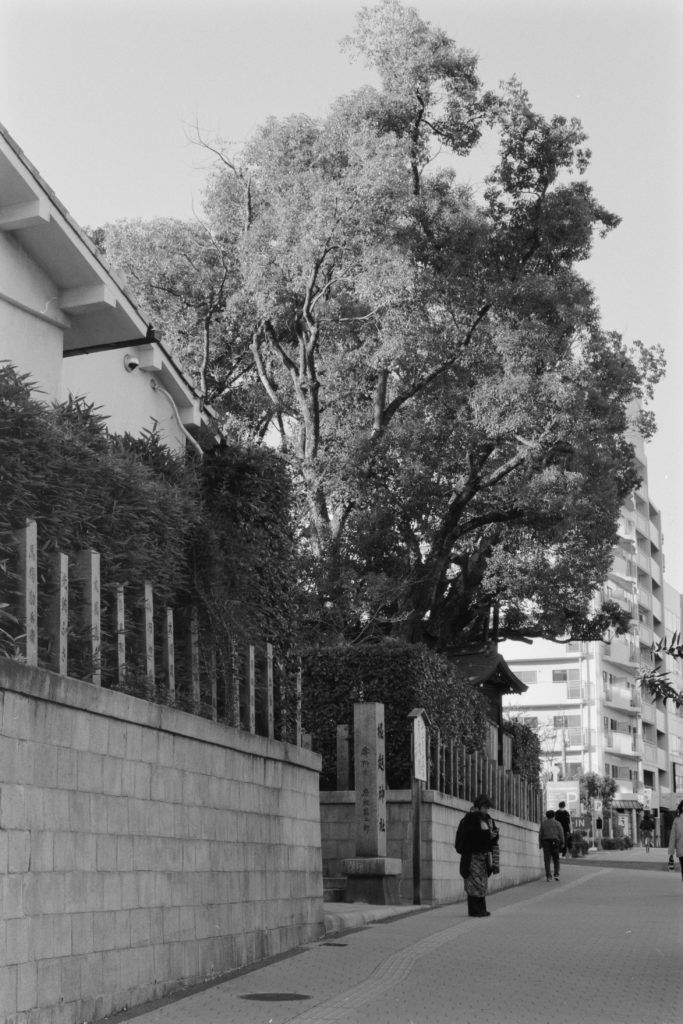 カメラはNikon F、レンズはNokton 58mm F1.4、フィルムはアクロスII。天王寺駅の北口から出て、商店街に入って、北上し、堀越神社あたりで谷町筋に出て、天王寺に戻るルート。
