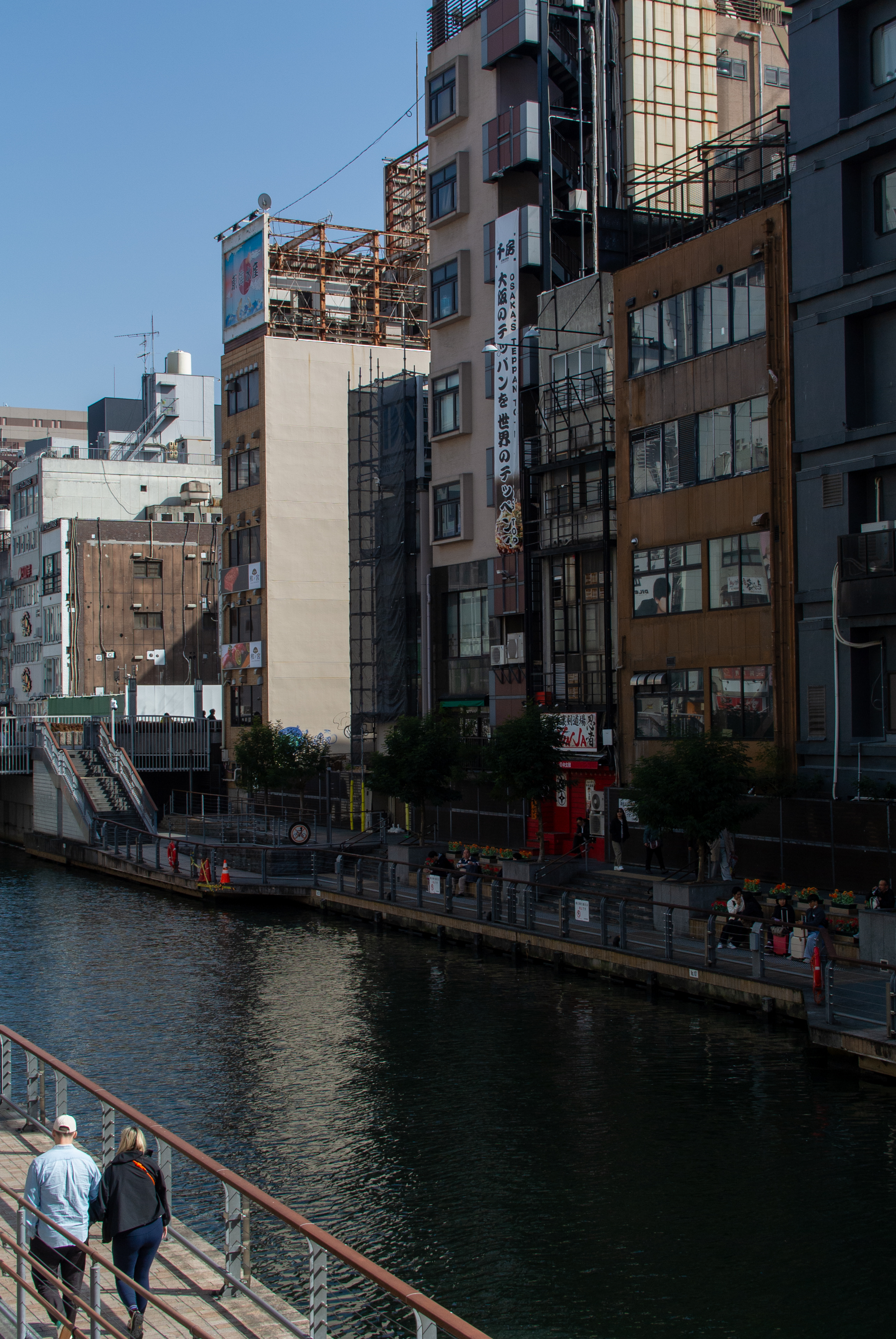 せっかく来たんだから、と水かけ不動にお詣りして、道頓堀川を渡ります。